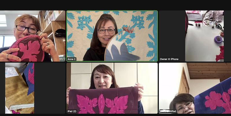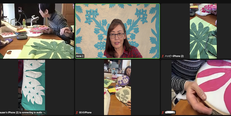 この4年間。なかなか日本へ行ったり、日本から来てくださる方の機会が減ってしまいました。そんな中、ずっとずっとズームレッスンに参加してくださっている2つのグループ。本当にハワイアンキルトを続けてくださっていただきありがたいです。広島チームと東京&九州チーム。。コロナ中でも素晴らしいズームでレッスンという形が生まれました。ご参加くださる生徒さんのおかげです。本当は直接お会いしたいですが、次回お会いするまでこのスタイルでしばらくお願いいたします。そしてみなさんのお元気そうなお顔を見ることができるのも素敵な瞬間です!